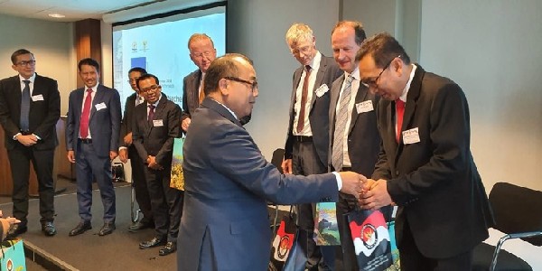 Dalam perkara ini, KPK menetapkan dua tersangka, yakni Direktur Utama Perum Perindo Risyanto Suanda dan pihak sebagai pemberi suap Direktur PT Navy Arsa Sejahtera (NAS) Mujib Mustofa.